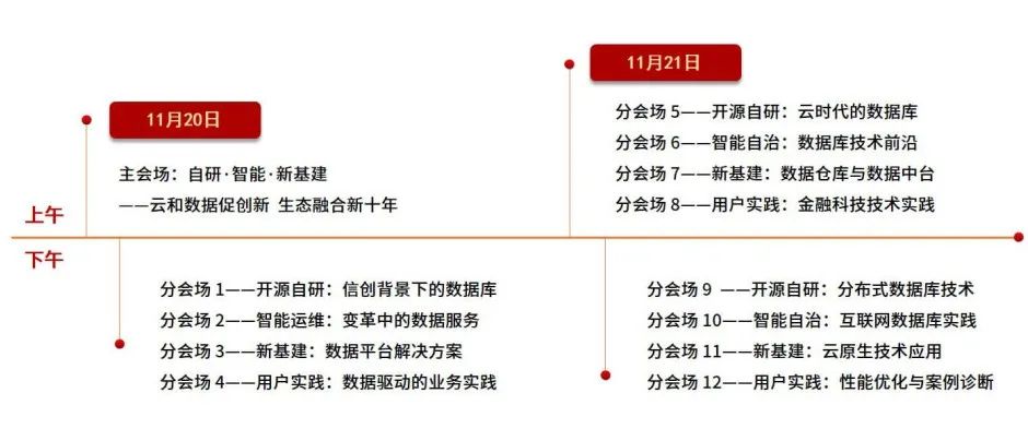 在此背景下,一年一度的数据技术嘉年华(DTC)将于2020年11月20-21日盛大开启。今年正值DTC举办的第十个年头,大会以“自研·智能·新基建——云和数据促创新 生态融合新十年” 为主题,打造 “开源自研、智能运维、智能自治、新基建、用户实践”五大模块,设置1个主会场、12个分会场,汇聚学术精英、数据库技术大咖、数据行业专家、互联网卓越产品,带来超过60场主题演讲,相邀数据英雄,总结过往十年历程与成绩,展望未来十年趋势与目标!