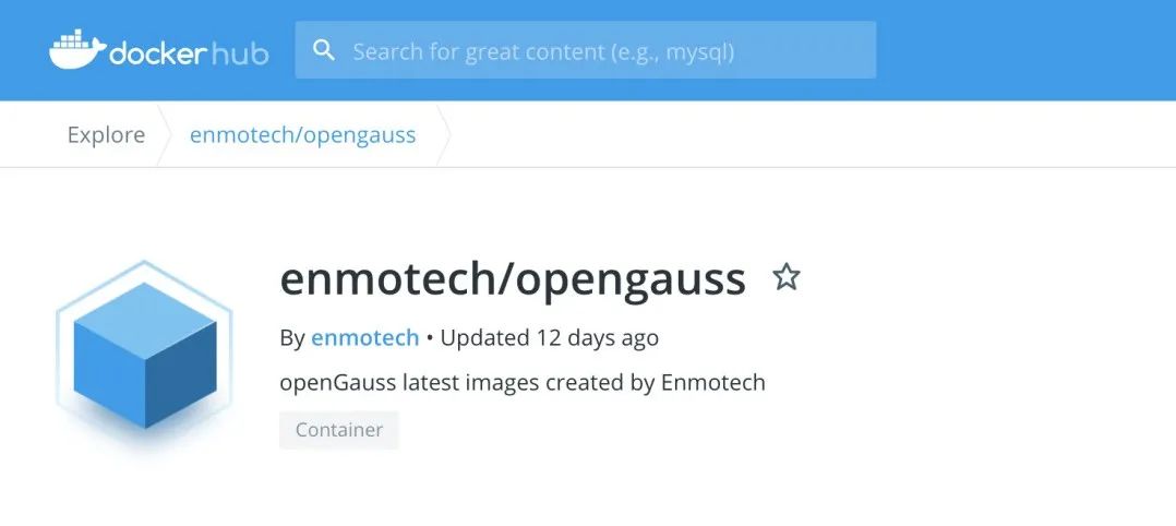 https://hub.docker.com/repository/docker/enmotech/opengauss