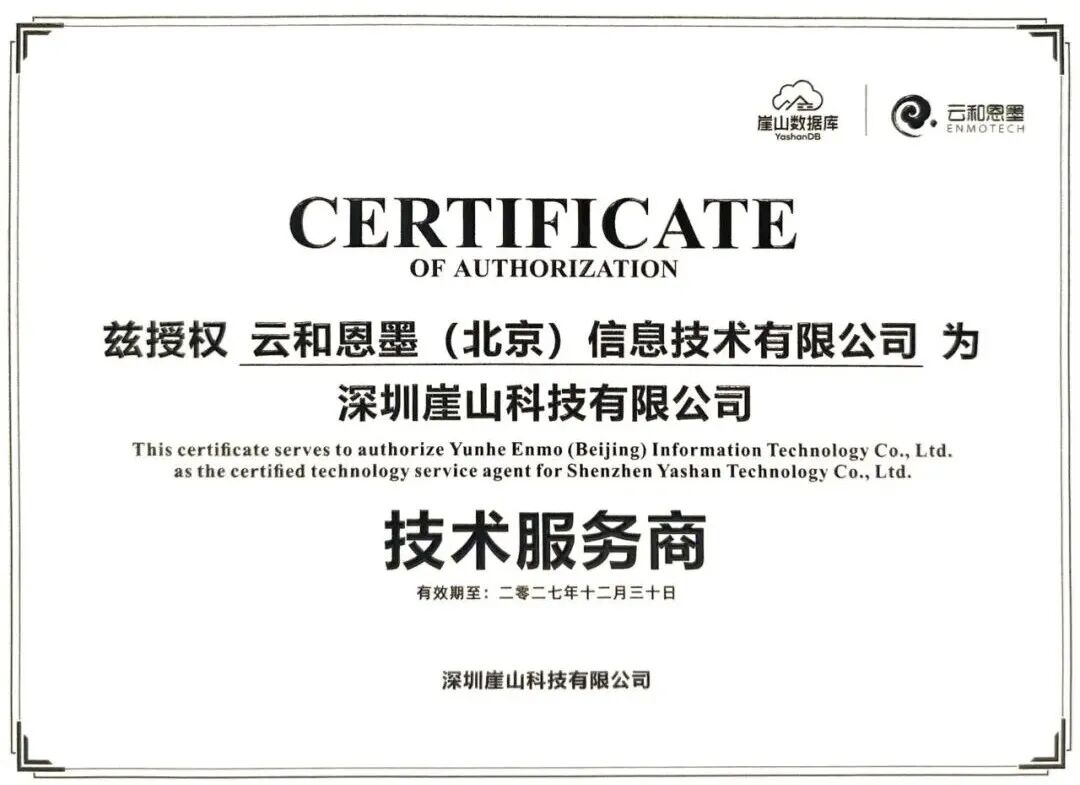 云和恩墨成为崖山科技授权的技术服务商
