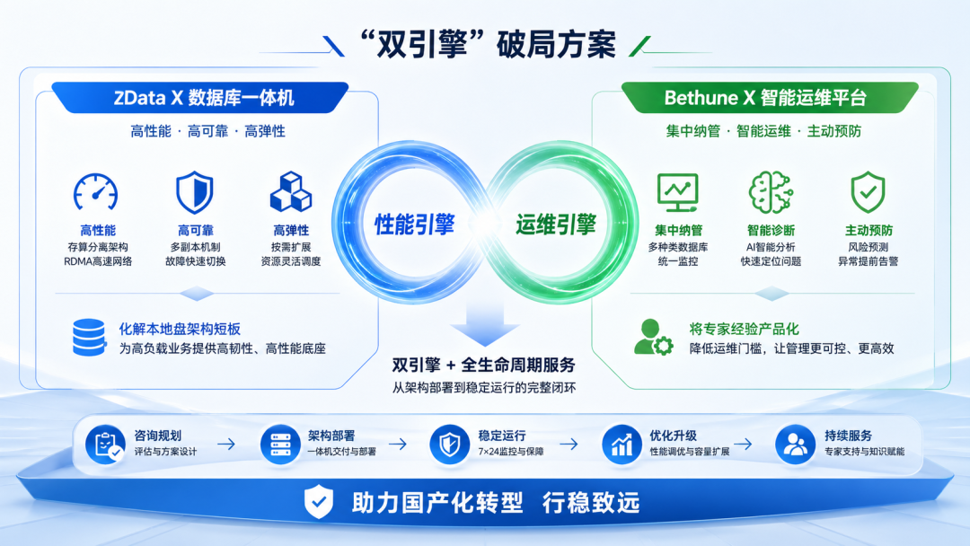两大“引擎”与全生命周期服务相结合,形成从架构部署到稳定运行的完整闭环,帮助用户在国产化转型中行稳致远。