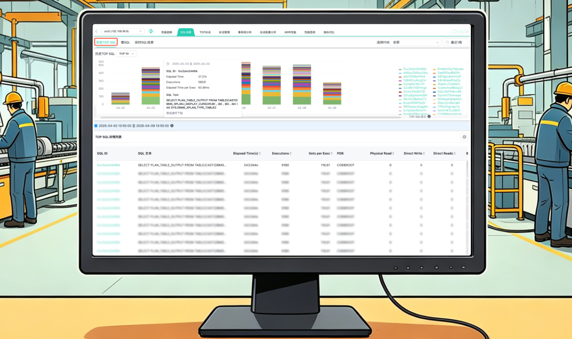 所以第一步,我们把监控的颗粒度提上去。以前只能看到“数据库能不能连上”,现在要能看到每条SQL的执行时间、等待事件、新增的慢查询等等。