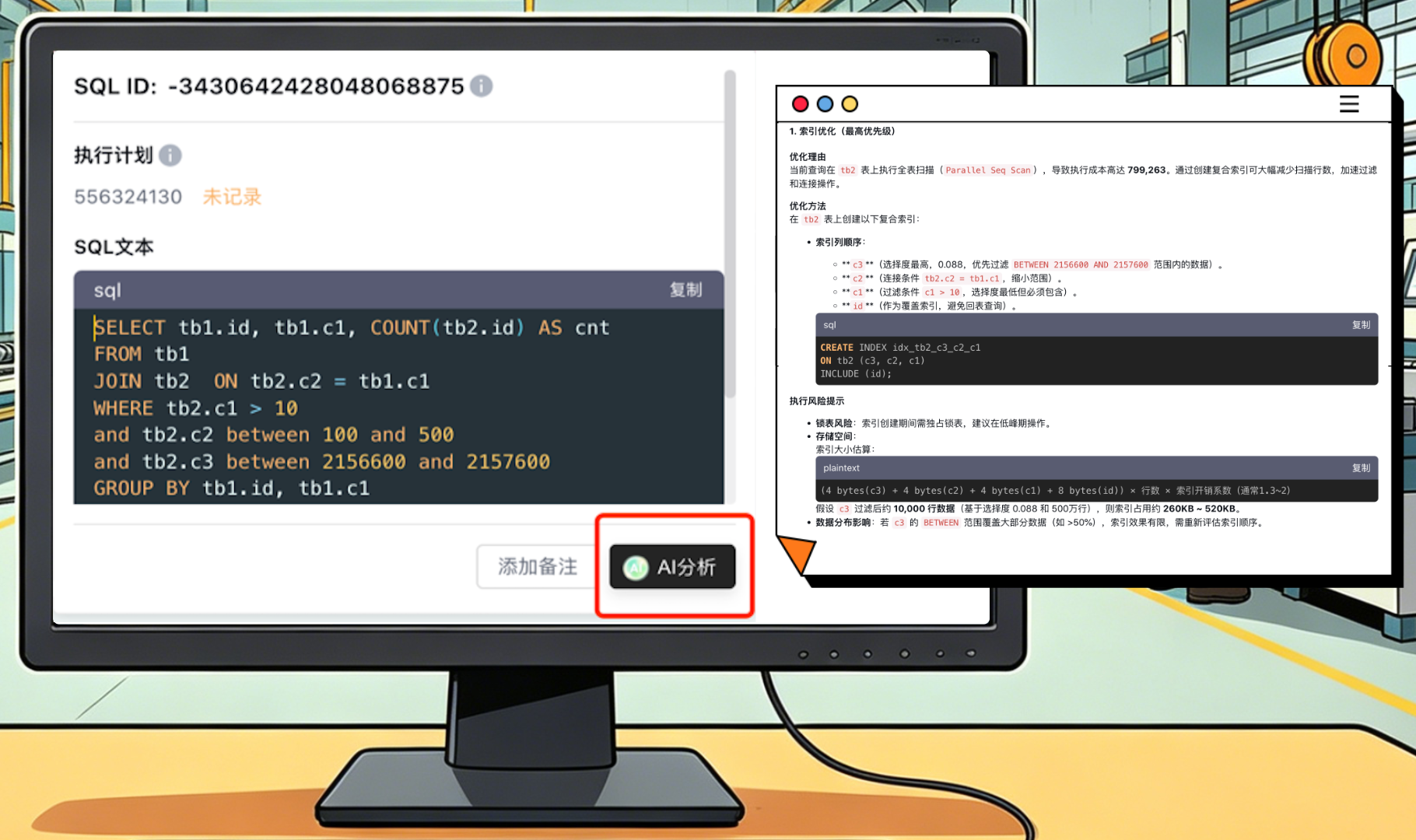 以前DBA排查完问题,还得自己研究怎么改。索引怎么建、SQL怎么改、不同方案有什么风险——这些都得靠个人经验判断。