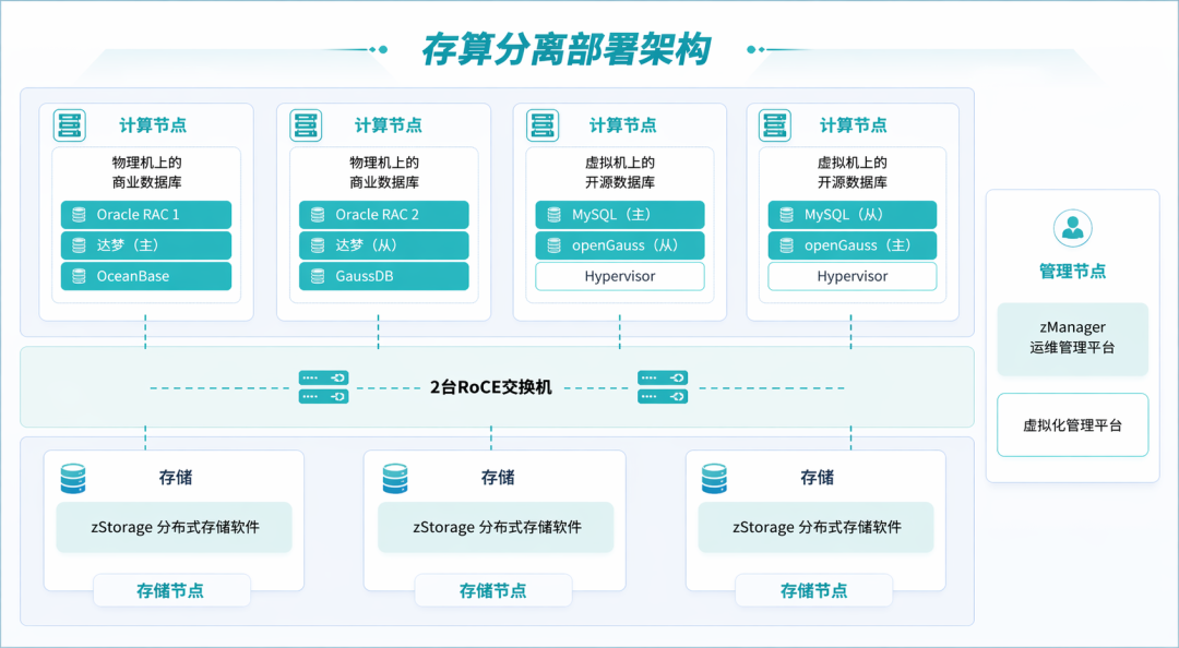 为此,云和恩墨的技术团队在PoC阶段重点测试这个场景。平台的内部存储网络采用RoCE(基于以太网的RDMA远程直接内存访问)协议——计算节点可以绕过操作系统内核,直接访问存储节点内存,延迟极低,CPU额外开销极小。