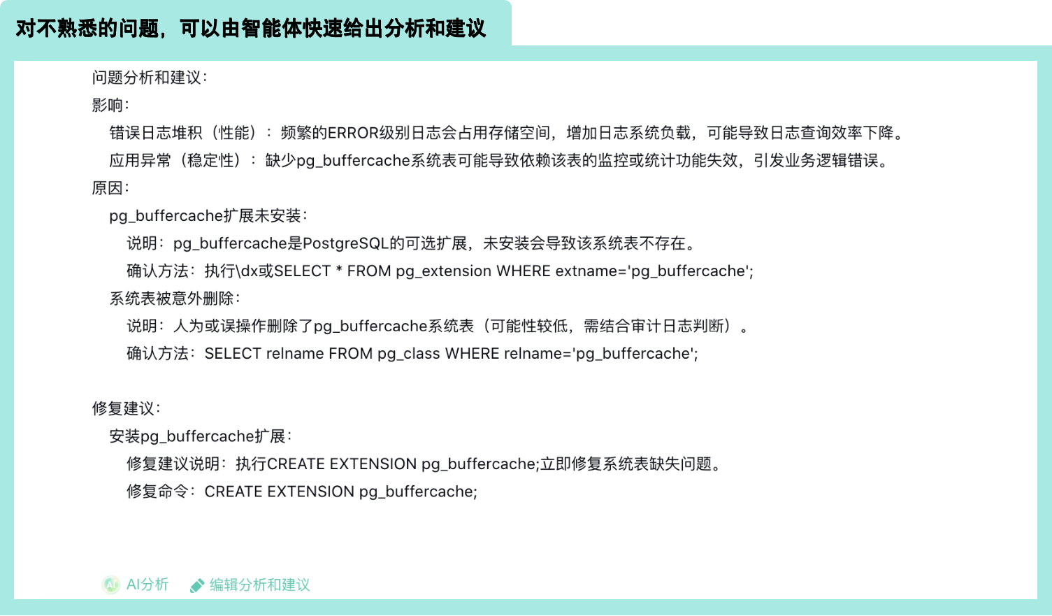 在数据库运维现场,最常见的问题并不是“怎么解决”,而是“我现在遇到的到底是什么问题”。这一现象源于认知差距:初级运维人员遇到专业术语、企业特有配置或国产数据库特性时,会花大量时间向同事打听或翻文档。