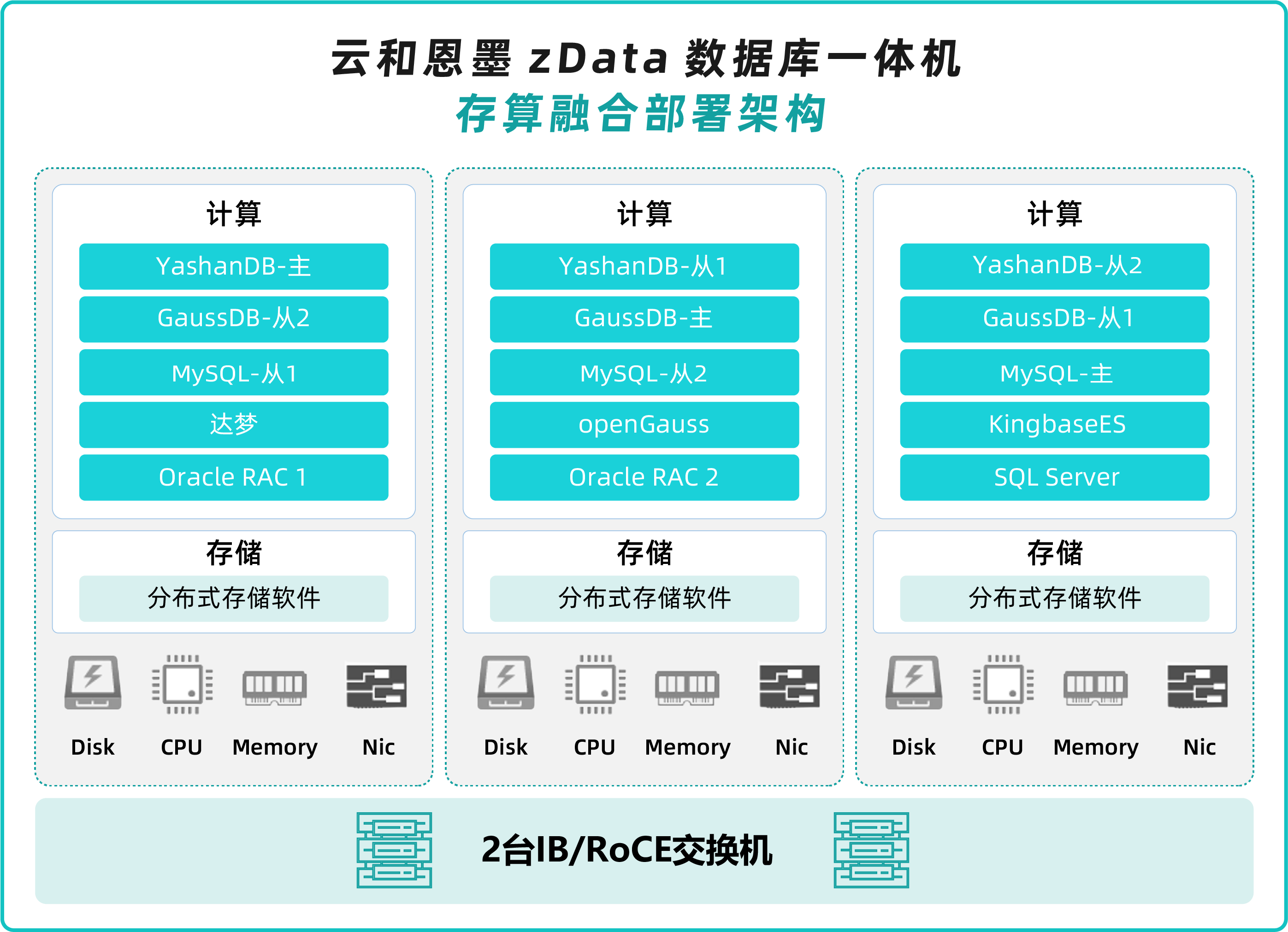 面对不同场景,zData在满足可靠性与性能需求的前提下,推出了不同架构的产品以满足不同用户的成本控制需求。目前,zData以存算分离架构满足电信、金融、能源等行业的大型核心应用需求;以存算融合架构(如图7所示)满足制造业、医疗、教育等行业的中等规模核心场景需求,在可靠性、性能和成本之间求解最佳模型。