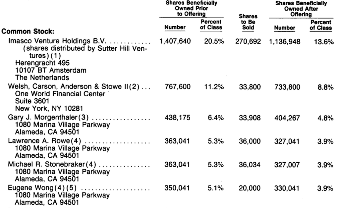 图10 INGRES公司IPO前后的主要股东持股情况