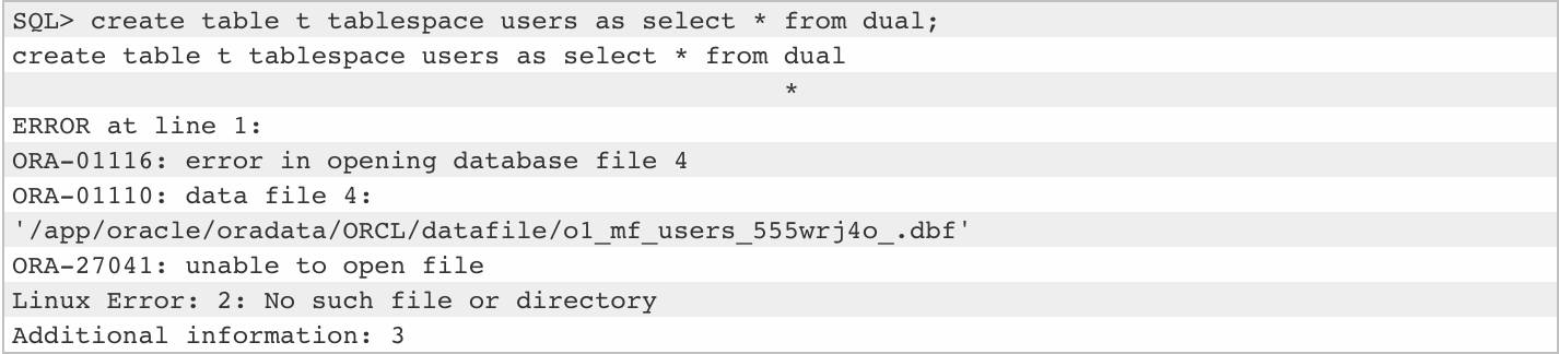 1. 在数据库 open 的时候,直接删除 users 表空间中的数据文件。